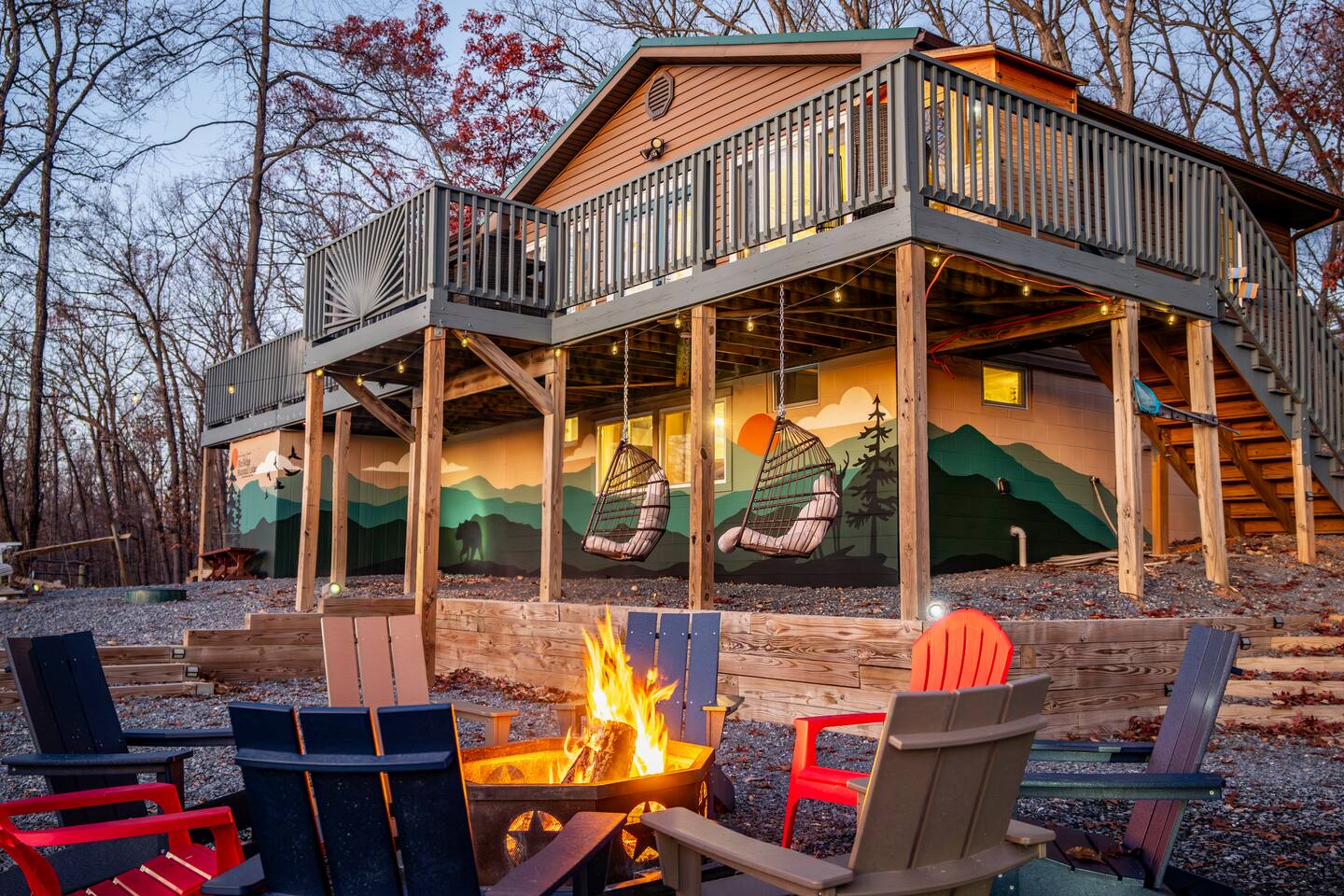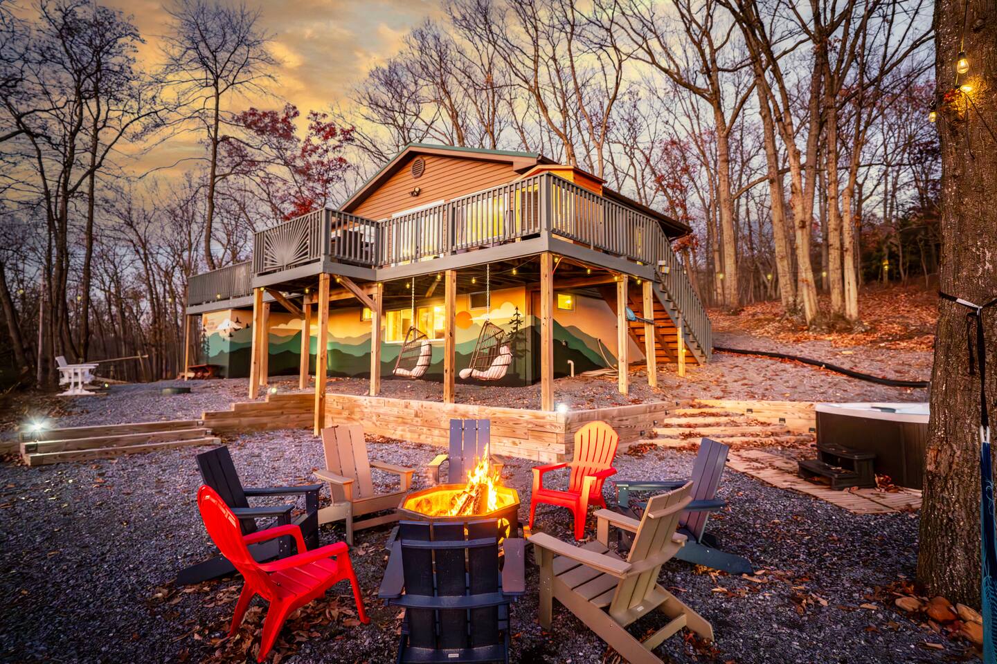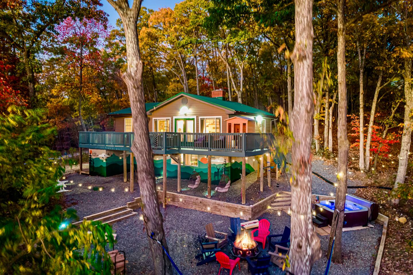 Welcome to Your Mountain Escape: Where Relaxation Meets Luxury. Looking for a mountain getaway that combines stunning views, cozy vibes, and just the right amount of modern comfort? You’ve found it. Welcome to a mountain retreat where nature’s beauty meets contemporary charm. The mountains are calling, and they won’t ask you about your cars extended warranty. JUST BOOKED? (you might after reading this) Step through the door, and boom—you’ve just walked into the perfect mix of rustic charm and modern comfort. This isn’t just any cabin; it’s a mountain retreat designed for adventure seekers, relaxation experts, and anyone who appreciates a little luxury with their wilderness. From the wood finishes to the cozy nooks made for unwinding, every inch of this space is crafted to make you feel at home. Whether you're here to soak in the hot tub, conquer the game room, or sip coffee on the deck while pretending you live here full-time (we get it, it’s tempting)—you’re in the right place. Kick off your shoes, settle in, and get ready for an unforgettable stay in the Shenandoah Mountains. Let the adventure begin! SLEEPING ARRANGEMENTS: Sweet Dreams Guaranteed Upstairs, you’ll find three comfy bedrooms: 🛏️ Two queen bedrooms for the ultimate in cozy relaxation. 🛏️ One twin bunk room—perfect for kids, or adults reliving their summer camp days. Downstairs, there’s another queen bedroom, because no one should have to fight over the best spot. Every room (except the bunk room—sorry, kids) comes with a Smart TV so you can wind down your way. DINING AND COMFORT: Sit, Savor, and Stay Awhile Between our fully upgraded kitchen (Gordon Ramsey not included), our living room filled with windows and natural light, and dining room with plenty of seating , you'll have no shortage places to sit down and enjoy a meal, a conversation, or just a good book and cup of coffee. GAME ROOM: Your Personal Arcade & Hangout Spot Head downstairs to the ultimate game room, where friendly competition is practically required. The wood bar sets the mood for a fun night in, while the lineup of classic arcade games, bumper pool, and darts keeps the energy going. Whether you're dominating Pac-Man or just kicking back with a drink, this space is built for nonstop fun. OUTDOOR OASIS: Deck, Sauna & Stargazing Goals Step outside and breathe in that crisp mountain air. The expansive deck is your go-to spot for grilling up a feast, lounging in the hammocks, or sweating it out in the sauna. When the sun sets, gather around the fire pit with Adirondack chairs, toast some marshmallows, and soak in the peaceful vibes. And let’s not forget the hot tub—because no mountain escape is complete without a steamy soak under the stars. ADVENTURE IS NOT FAR AWAY—Are You Ready? Step outside, and the great outdoors wastes no time pulling you in. Adventure is not far away—in fact, you can see Massanutten Resort right from the deck! Just a 30-minute drive from the cabin, it’s your go-to spot for skiing, tubing, ziplining, and more. Looking for something a little more mysterious? Luray Caverns is waiting to be explored, offering an underground world of breathtaking rock formations (because who doesn’t love a little hidden treasure?). And, of course, there’s Shenandoah National Park, where breathtaking trails and curious wildlife practically beg for a photoshoot. No matter your adventure style—laid-back explorer or full-throttle thrill-seeker—this is your perfect launchpad. GOT QUESTIONS?? We take hospitality as seriously as we take our coffee—aka, very seriously. Need recommendations for the best local bites or must-do activities? We’ve got plenty. Looking for insider tips to make the most of your stay? Consider us your personal vacation concierges—here to help, minus the fancy uniforms. This is more than just a cabin—it’s an experience. Book now and get ready to relax, explore, and make memories that last long after checkout.