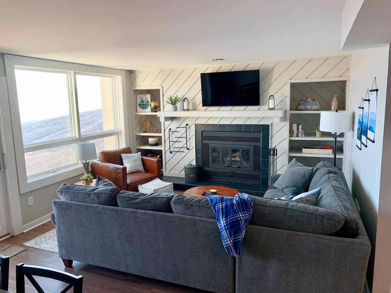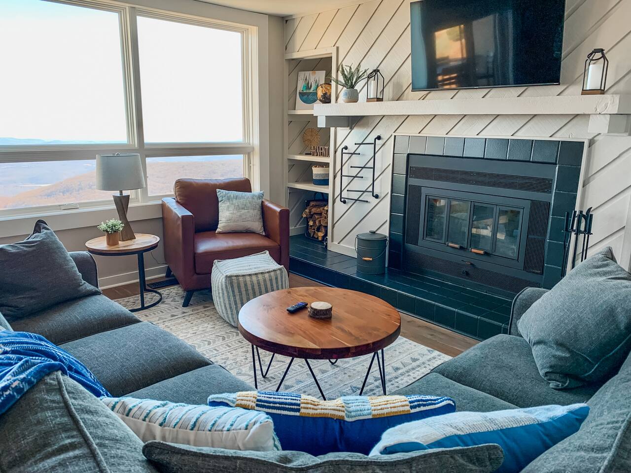 Our warm and inviting condo combines amazing proximity to hiking with to-die-for views of the Blue Ridge Mountains and the horizon 75 MILES distant! Our condo sits a mere 400-yd walk from the closest hiking trail and also has direct access to the ridge line walking area - perfect place for a morning stroll! This updated and modern mountain themed space features: ✸ Newly renovated! ✸ Stocked modern kitchen! ✸ Two full bathrooms! ✸ Helix Hospitality Mattresses!! ✸ Cozy Fireplace w/ wood provided!