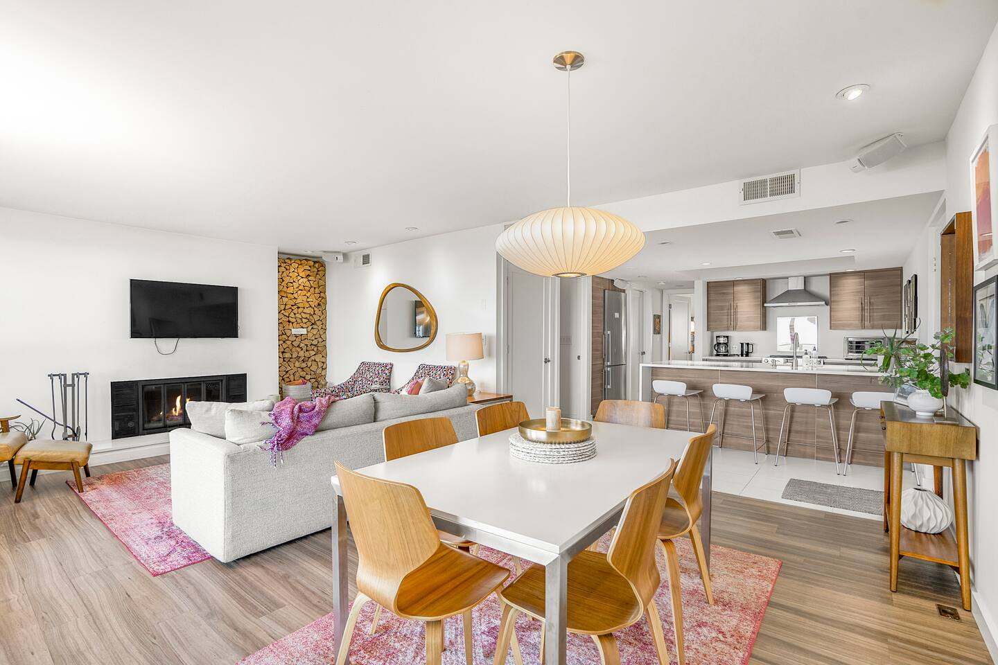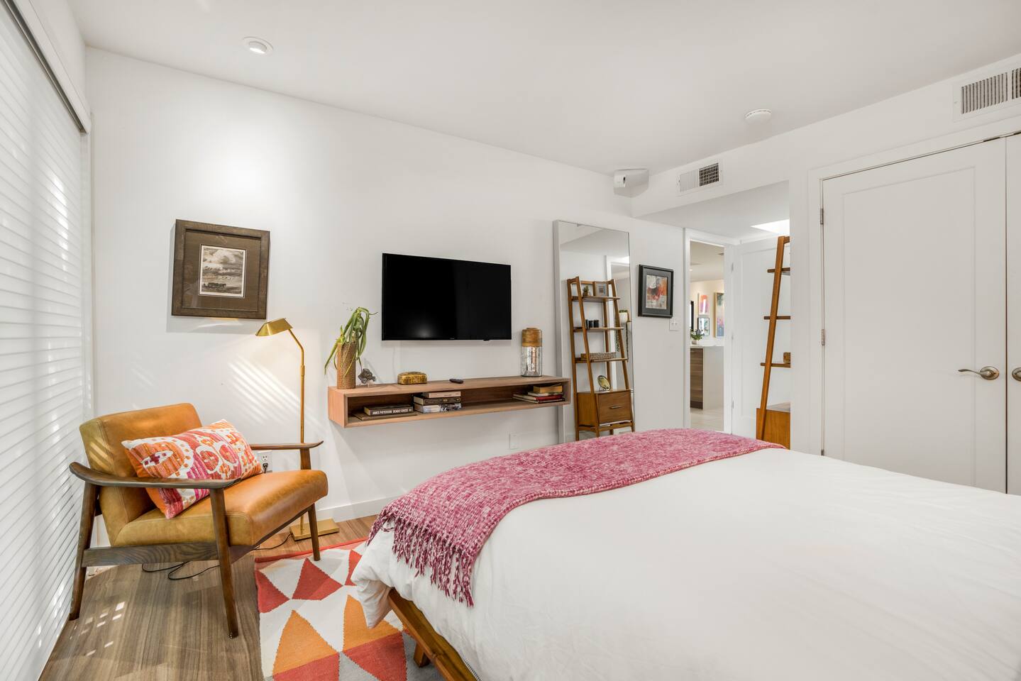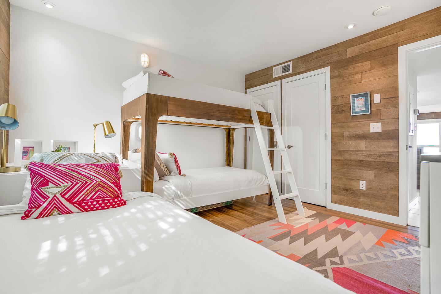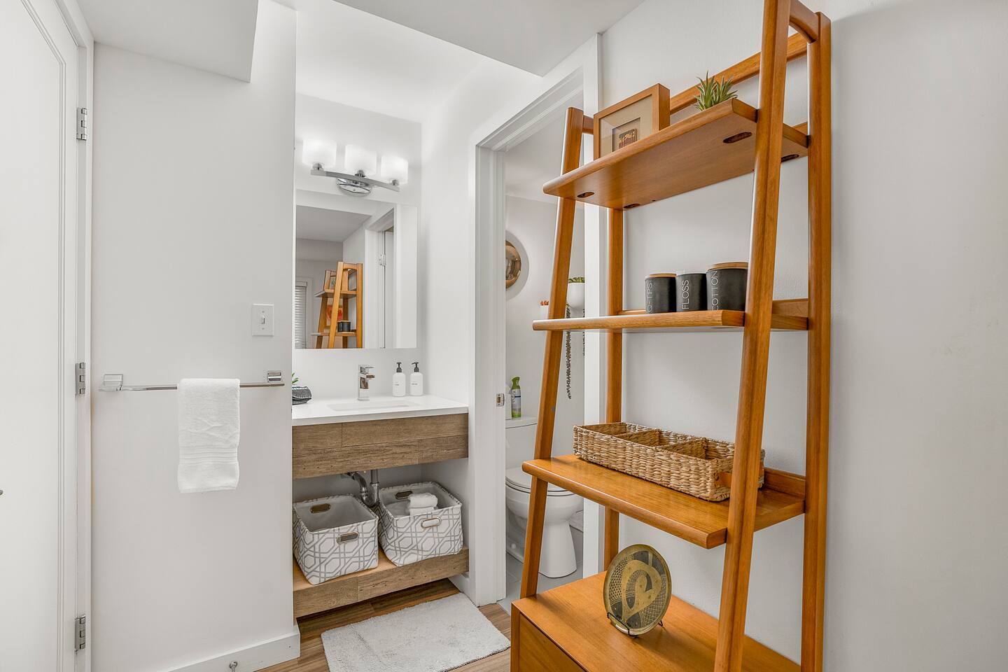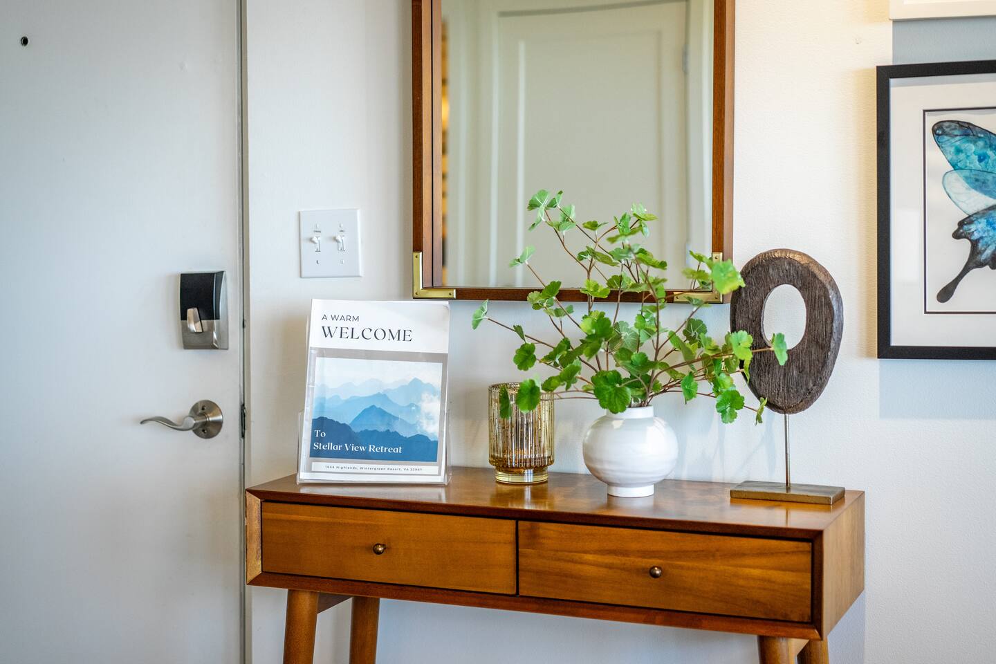 Please Note: From March 17 to April 15, 2025, the building will undergo a re-roofing project. While we don’t anticipate a significant impact since this is not a top-floor unit, there may be some daytime noise and construction equipment in the parking area. Please keep this in mind when booking during this period. Upon arriving at our property, you will find plenty of parking in the spacious lot for your vehicles. A short, landscaped walkway leads to our building. Once inside, walk up a short set of steps and find the front door on your right. Adjacent to the front door sits a lockable ski locker, available for your use and convenience during the winter season. Additionally, a stylish bench is provided to make taking off boots a breeze. Upon entering the property through the front door you will be welcomed into a cozy and uplifting space. Luxurious furniture and finishes abound, while thoughtful décor and artwork hang throughout. LIVING ROOM: Immediately on your left as you step into the condo you will walk into our open floor plan living area. The living room provides seating for 5 on our comfy sofa and stylish armchairs. A large double window provides abundant natural lighting and expansive views of the Blue Ridge Mountains and Rockfish Valley. No tired old 1980’s fireplace façade here! Our renovated living room includes a high-end white quartz wall and apron in front of a cozy fireplace. Firewood is included! A smart TV with Roku sits mounted above the fireplace. Bring your own logins and enjoy any streaming app. The other end of the room provides space for dining at our table for 6. Guests love to enjoy a home cooked meal or take-out while communing over the views from our dining table through the large sliding glass door. Highlights of the living room include: ❆ Breath taking views! ❆ Mid-century modern! ❆ Smart TV with Roku! ❆ Open to the kitchen and dining areas! ❆ Warming fireplace w/wood included! ❆ Incredible artwork! KITCHEN: The living room space opens to the kitchen with a large white quartz bar-top counter. Four modern bar stools allow for even more room to spread out and socialize as a family or group while dinner is prepared. Luxury abounds in the kitchen with gorgeous stainless-steel appliances and modern cabinetry. The fully stocked kitchen comes equipped with all the necessary cooking tools, coffee, paper goods, and dinnerware. Our guests appreciate the option to enjoy preparing a home cooked meal in the kitchen while gathering around the bar top to partake in a local craft beer or wine and great conversation. Highlights of our kitchen include: ❆ Luxury throughout! ❆ Plenty of seating and gathering space! ❆ Fully stocked with cookware and dinnerware! ❆ Large bar-top counter! ❆ Coffee/creamer/sugar/tea provided! MASTER BEDROOM: A small hall leads to the bedrooms and bathrooms. The master bedroom and en-suite bathroom sit in the back corner of the condo. The queen bed sits between twin nightstands with reading lights. A large closet provides added convenience and touches of home for your trip. A smart TV with Roku is provided here as well (bring your own login). The modern en-suite bathroom features a tile shower and comes equipped with towels and washcloths from Pottery Barn. Highlights of the master suite include: ❆ Luxury memory foam mattress! ❆ Smart TV! ❆ Private renovated bathroom! ❆ Full size shower/tub combo! ❆ Premium linens from Pottery Barn and The Company Store provided! OTHER BEDROOMS AND BATHROOM: The second bedroom is also off the same short hallway as the master. Bedroom 2 provides a fun space for kids and adults alike. Three twin beds – a bunk bed and additional twin bed - and a large built-in table give all the space needed to sleep 3. Kids enjoy the bunk bed setup while adults have the option of the bottom bunk and the other twin bed at standard height. Another Roku enabled smart TV is mounted on the wall. A pack-n-play is available in the closet for your use. The second bathroom sits off the hallway across from the kitchen area and provides a shower/tub combo and well sized vanity. A washer and dryer are also available for your use in a closet in this bathroom. OUTDOOR SPACE: The balcony, accessible from the living area, is one of the highlights of the condo. Well-appointed luxury outdoor furniture give our guests an incredible space to take in the natural beauty of the Shenandoah region while indulging in a morning coffee or an evening beverage. LOCATION: We are only: ❆ 30 seconds to the nearest hiking trail! ❆ 2 minute walk to Highlands Express Chairlift! ❆ 2 minute walk to Fire and Hearth bakery! ❆ 10-30 minutes from the wide array of outdoor activities and breweries/wineries of Nelson County, VA! ATTENTION TO DETAIL ✔ Cleanliness is a top priority for us and we pride ourselves on welcoming you into a sparkling clean home! ✔ Our home has a washer and dryer for your use. Dryer sheets and detergent are available. ✔ We keep a first aid kit in the kitchen for minor cuts and scrapes. ✔ We provide premium linens for each guest. ✔ We provide basic paper goods and consumables - paper towels, tissues, toilet paper, dishwasher tablets, dish soap, sponges. ✔ Coffee, creamer, sugar, and tea are included.