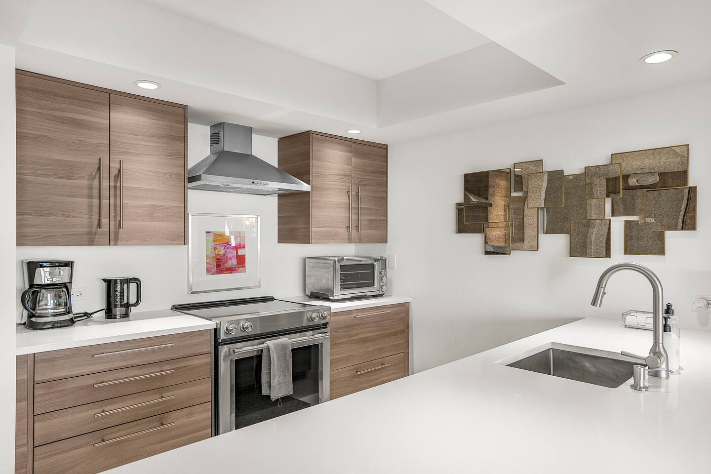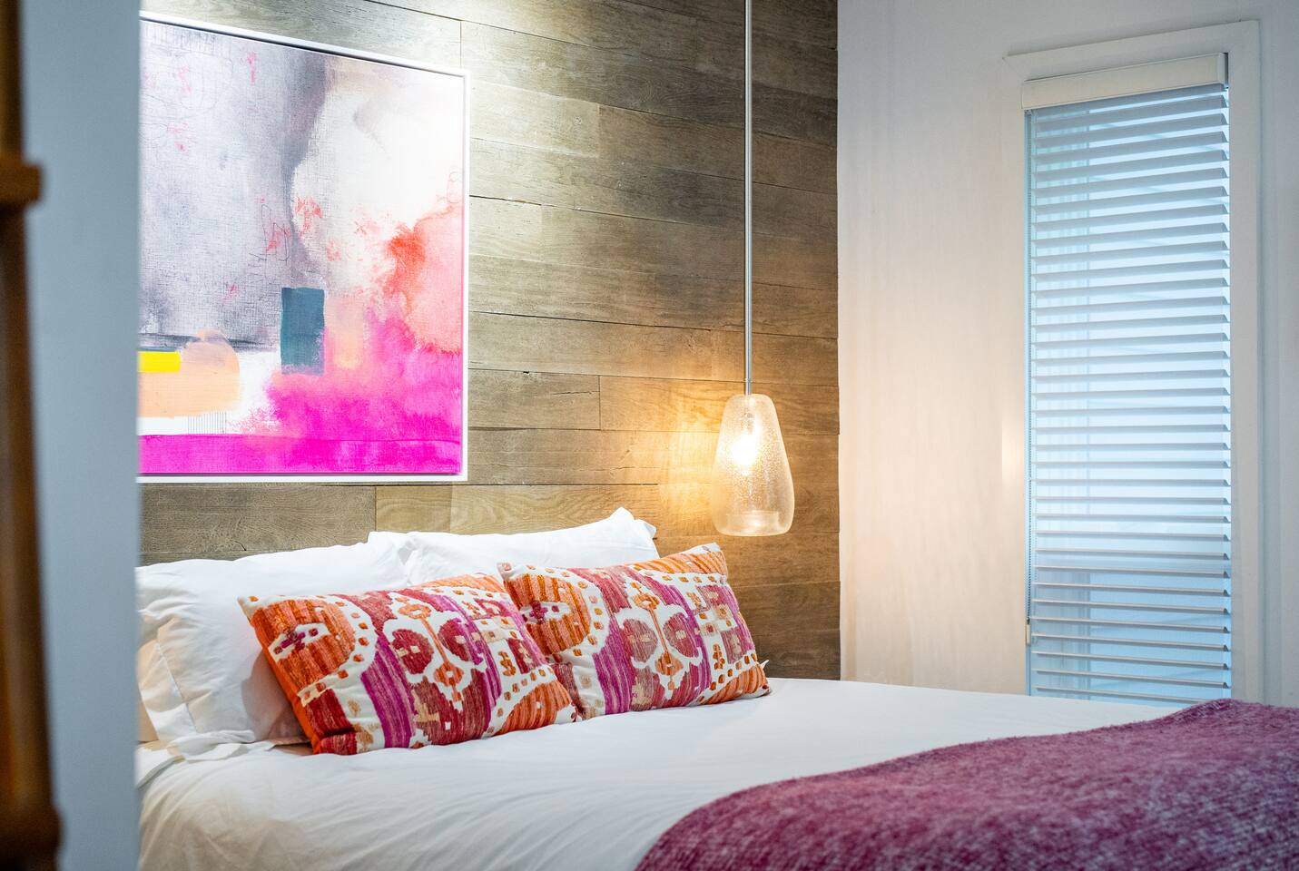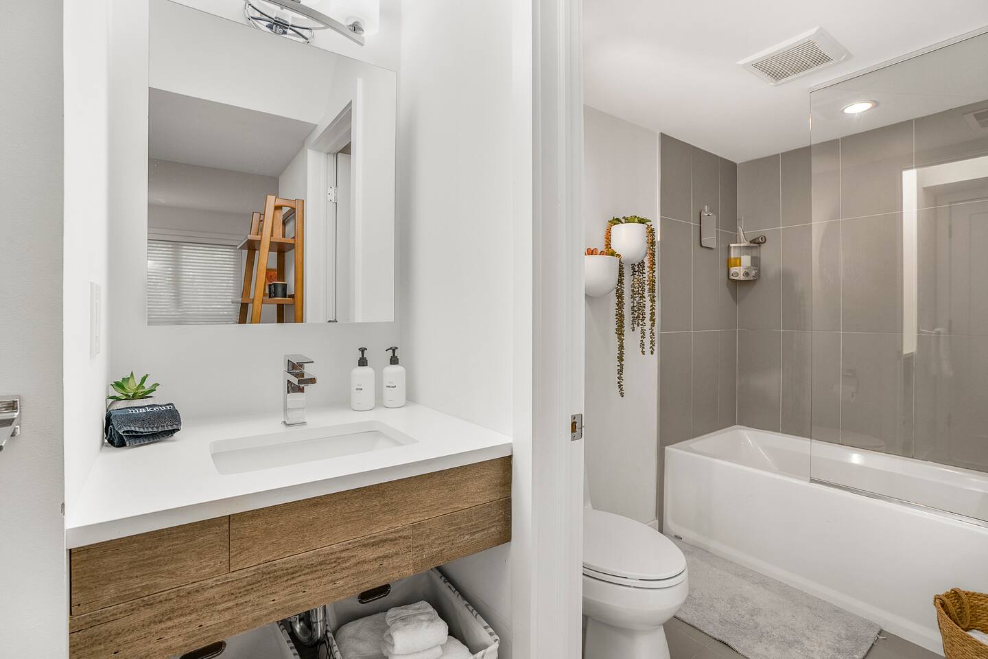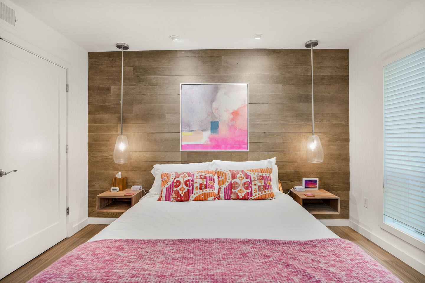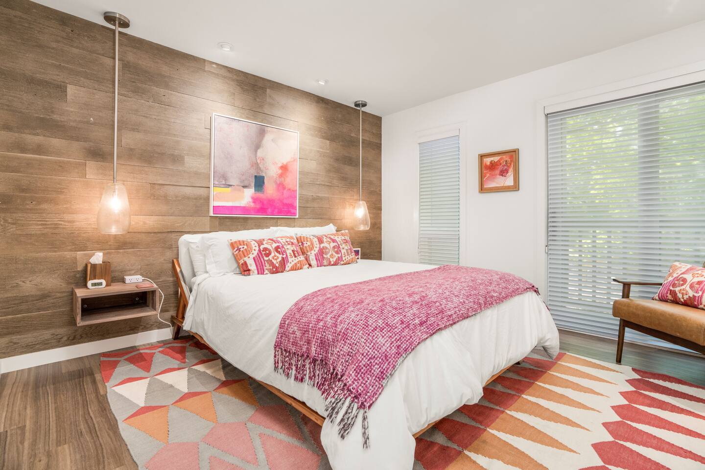 Please Note: From March 17 to April 15, 2025, the building will undergo a re-roofing project. While we don’t anticipate a significant impact since this is not a top-floor unit, there may be some daytime noise and construction equipment in the parking area. Please keep this in mind when booking during this period. Upon arriving at our property, you will find plenty of parking in the spacious lot for your vehicles. A short, landscaped walkway leads to our building. Once inside, walk up a short set of steps and find the front door on your right. Adjacent to the front door sits a lockable ski locker, available for your use and convenience during the winter season. Additionally, a stylish bench is provided to make taking off boots a breeze. Upon entering the property through the front door you will be welcomed into a cozy and uplifting space. Luxurious furniture and finishes abound, while thoughtful décor and artwork hang throughout. LIVING ROOM: Immediately on your left as you step into the condo you will walk into our open floor plan living area. The living room provides seating for 5 on our comfy sofa and stylish armchairs. A large double window provides abundant natural lighting and expansive views of the Blue Ridge Mountains and Rockfish Valley. No tired old 1980’s fireplace façade here! Our renovated living room includes a high-end white quartz wall and apron in front of a cozy fireplace. Firewood is included! A smart TV with Roku sits mounted above the fireplace. Bring your own logins and enjoy any streaming app. The other end of the room provides space for dining at our table for 6. Guests love to enjoy a home cooked meal or take-out while communing over the views from our dining table through the large sliding glass door. Highlights of the living room include: ❆ Breath taking views! ❆ Mid-century modern! ❆ Smart TV with Roku! ❆ Open to the kitchen and dining areas! ❆ Warming fireplace w/wood included! ❆ Incredible artwork! KITCHEN: The living room space opens to the kitchen with a large white quartz bar-top counter. Four modern bar stools allow for even more room to spread out and socialize as a family or group while dinner is prepared. Luxury abounds in the kitchen with gorgeous stainless-steel appliances and modern cabinetry. The fully stocked kitchen comes equipped with all the necessary cooking tools, coffee, paper goods, and dinnerware. Our guests appreciate the option to enjoy preparing a home cooked meal in the kitchen while gathering around the bar top to partake in a local craft beer or wine and great conversation. Highlights of our kitchen include: ❆ Luxury throughout! ❆ Plenty of seating and gathering space! ❆ Fully stocked with cookware and dinnerware! ❆ Large bar-top counter! ❆ Coffee/creamer/sugar/tea provided! MASTER BEDROOM: A small hall leads to the bedrooms and bathrooms. The master bedroom and en-suite bathroom sit in the back corner of the condo. The queen bed sits between twin nightstands with reading lights. A large closet provides added convenience and touches of home for your trip. A smart TV with Roku is provided here as well (bring your own login). The modern en-suite bathroom features a tile shower and comes equipped with towels and washcloths from Pottery Barn. Highlights of the master suite include: ❆ Luxury memory foam mattress! ❆ Smart TV! ❆ Private renovated bathroom! ❆ Full size shower/tub combo! ❆ Premium linens from Pottery Barn and The Company Store provided! OTHER BEDROOMS AND BATHROOM: The second bedroom is also off the same short hallway as the master. Bedroom 2 provides a fun space for kids and adults alike. Three twin beds – a bunk bed and additional twin bed - and a large built-in table give all the space needed to sleep 3. Kids enjoy the bunk bed setup while adults have the option of the bottom bunk and the other twin bed at standard height. Another Roku enabled smart TV is mounted on the wall. A pack-n-play is available in the closet for your use. The second bathroom sits off the hallway across from the kitchen area and provides a shower/tub combo and well sized vanity. A washer and dryer are also available for your use in a closet in this bathroom. OUTDOOR SPACE: The balcony, accessible from the living area, is one of the highlights of the condo. Well-appointed luxury outdoor furniture give our guests an incredible space to take in the natural beauty of the Shenandoah region while indulging in a morning coffee or an evening beverage. LOCATION: We are only: ❆ 30 seconds to the nearest hiking trail! ❆ 2 minute walk to Highlands Express Chairlift! ❆ 2 minute walk to Fire and Hearth bakery! ❆ 10-30 minutes from the wide array of outdoor activities and breweries/wineries of Nelson County, VA! ATTENTION TO DETAIL ✔ Cleanliness is a top priority for us and we pride ourselves on welcoming you into a sparkling clean home! ✔ Our home has a washer and dryer for your use. Dryer sheets and detergent are available. ✔ We keep a first aid kit in the kitchen for minor cuts and scrapes. ✔ We provide premium linens for each guest. ✔ We provide basic paper goods and consumables - paper towels, tissues, toilet paper, dishwasher tablets, dish soap, sponges. ✔ Coffee, creamer, sugar, and tea are included.