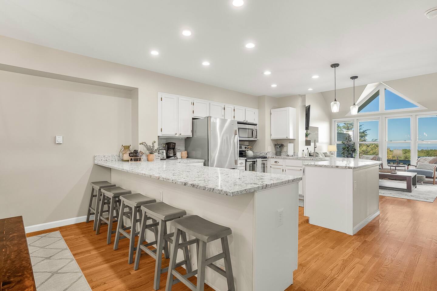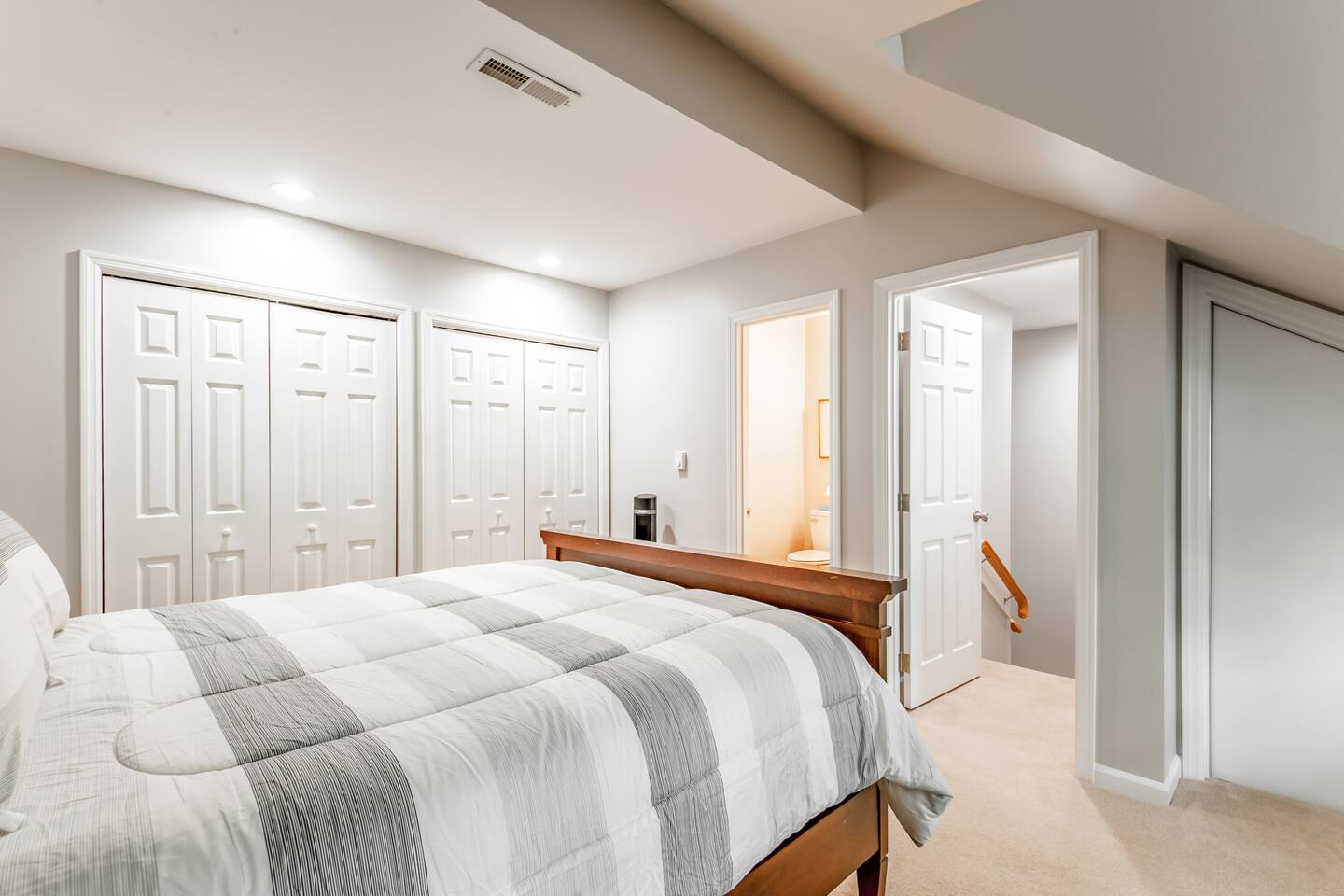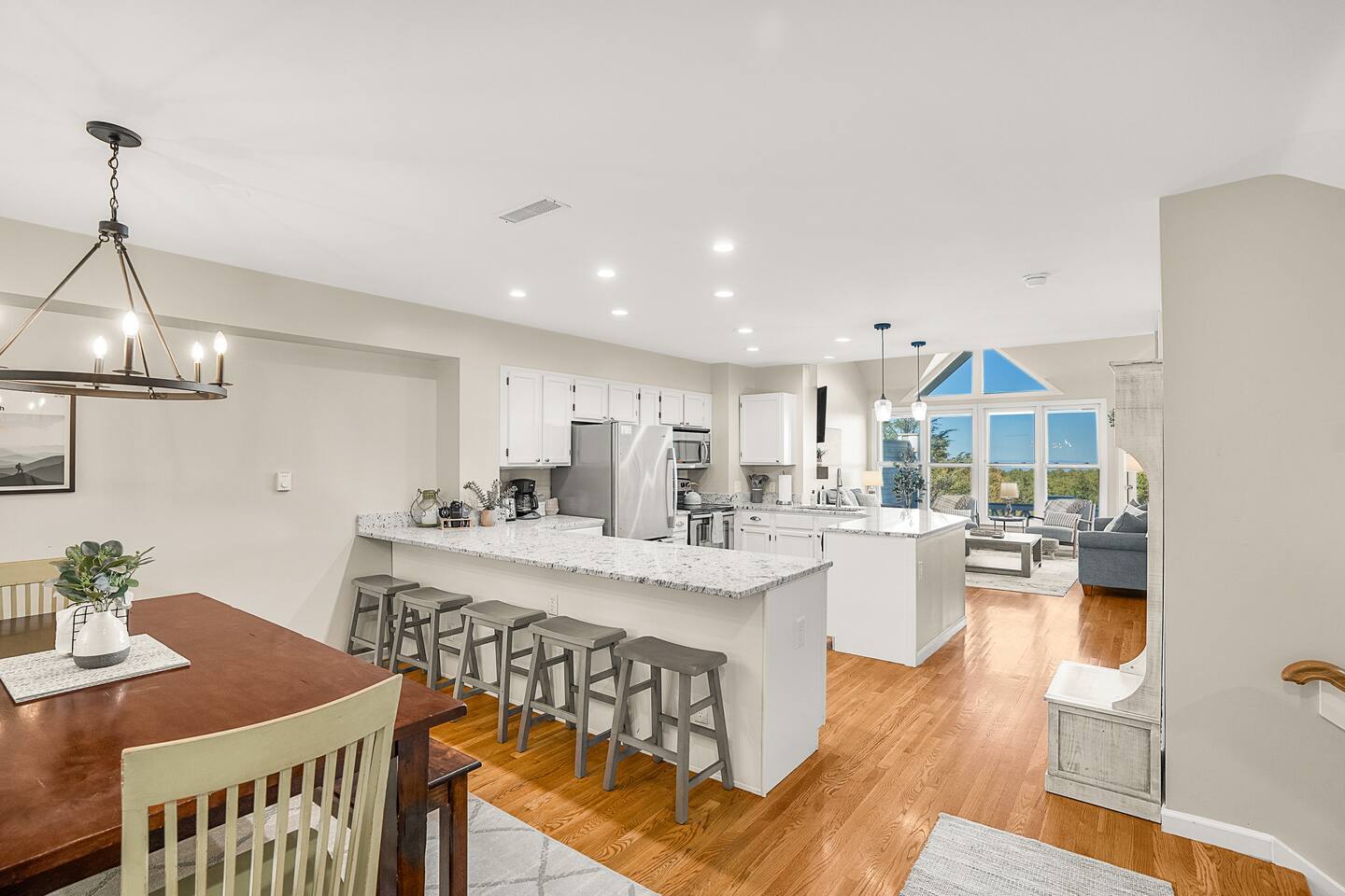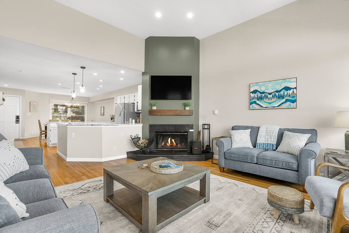 Welcome to our mountain top home, just minutes from the heart of the resort, connected to walking trails, and with spectacular views. Our home is ideal for families, getaways, exploring the brew and wine scene, and hiking and skiing. A short wooden walkway takes you from the parking spots to the front door. Immediately to your right you will see the lockable ski locker and complimentary stacked fire wood. When you come in the front door you will immediately experience the updated coziness and attention to detail in this home. MAIN LEVEL The Main Level features an open floor plan kitchen, dining, living space, and a half bath. The dining has seating for 8+ with additional bar seating for 5. The kitchen is well-equipped with updated finishes and all of the cookware and appliances you could need for a home-cooked meal. All of the basic necessities are provided - coffee, creamer, sugar, olive oil, salt & pepper. The living room boasts vaulted ceilings, wall-to-wall mountain views, a wood-burning fireplace (please bring your own firewood - easily obtainable locally!), and quick access to the scenic deck. On the deck we provide seating to allow you to enjoy a morning coffee or an evening glass of wine while watching the sunset. The Roku TV above the fireplace has just about every streaming app - bring your own app logins and enjoy all your regular shows. Guest mode ensures you will be automatically logged out at the end of your stay. We provide a custom made detailed Guide Book for your stay. Inside of it you will find abundant information about the house, local activities, hiking options, and the food, wine, and beer scene. BEDROOMS There are 4 bedrooms, each with their own updated private full-bath. ❆Bedroom 1 (top floor) features a queen bed and 3/4 bathroom. ❆Master Bedroom (middle floor) features a king bed, full bathroom with double vanity, walk in closet, and private deck with mountain views. ❆Bedroom 3 (middle floor) features a queen bed and private bathroom ❆Bedroom 4 (bottom floor) features a queen bed, twin bunkbeds, and private bathroom. ❆All 4 en-suite bathrooms have a hair dryer. ❆A pack-n-play with sheets is available for use. OUTDOOR SPACE A short 100 yard walk right up the hill from the home is a private community picnic area with gorgeous views of the mountains and valley. Enjoy an unforgettable mountain sunset as you relax and play bocci ball and corn hole. You will also have access to the outdoor Chestnut Springs and Rhodes Farms pools located nearby (Memorial Day through Labor Day) TRIP GUIDEBOOK We created a custom 34 page Trip Guidebook for our home that we will email to you a couple of days prior to check-in. A hard copy is also available in the home for use during your stay. Features include: ✔ Information about the house for check-in/out and during your stay ✔ Details about Wintergreen ✔ Information about area food, breweries, wineries, cideries, and distilleries ✔ Ideas for things to do with kids ✔ Ideas for activities and day trips ✔ Our favorite hiking trails both in and around Wintergreen ATTENTION TO DETAIL ✔ We provide high end and health conscious Public Goods brand shampoo, conditioner, body wash, hand soap, and lotion. ✔ Our home has a washer and dryer along with ironing board and iron for your use. Dryer sheets and detergent are available. ✔ We keep a first aid kit in the kitchen for minor cuts and scrapes. ✔ The living room, master bedroom, and downstairs kid friendly bedroom feature Roku TVs, just bring your own login and enjoy any standard app. ✔ We provide premium linens for each guest. ✔ We provide basic paper goods and consumables - paper towels, tissues, toilet paper, dishwasher tablets, dish soap, sponges. ✔ Coffee, creamer, sugar are included. ✔ If ANYTHING is amiss let us know and we will rectify the situation promptly!